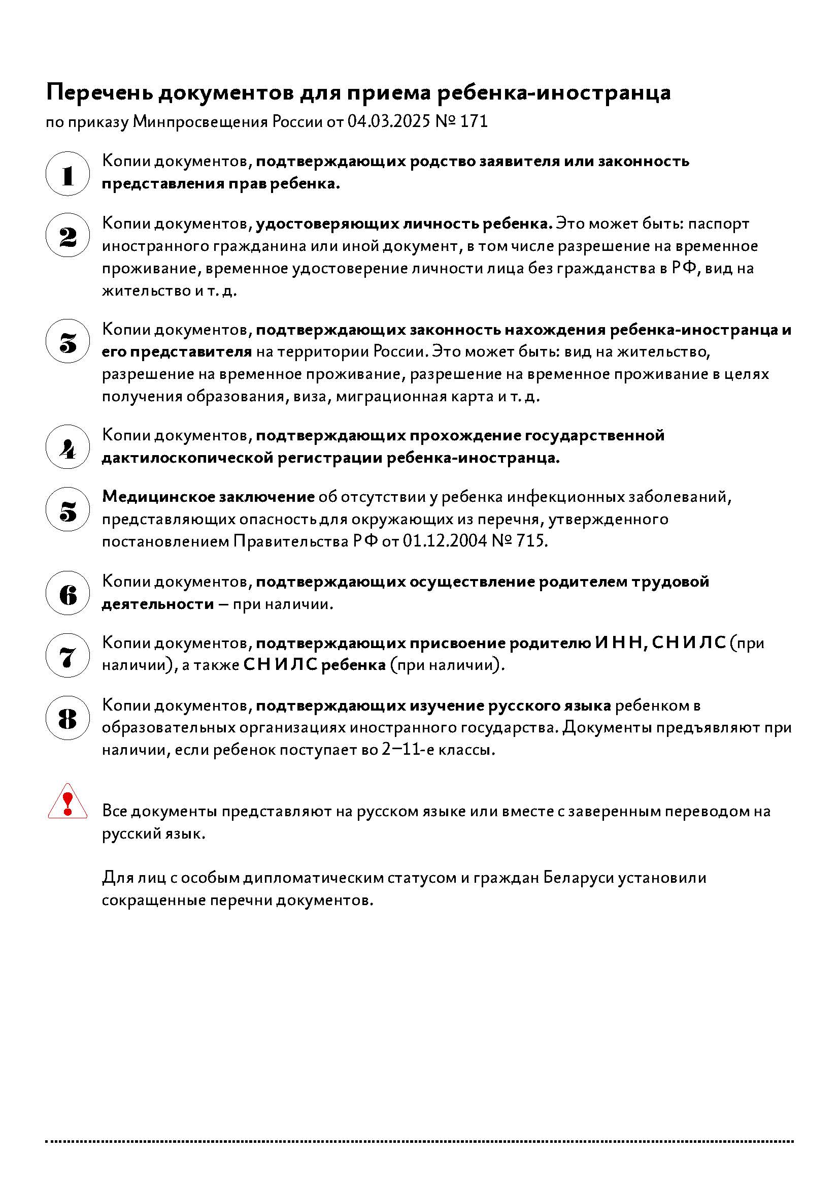 Дети иностранных граждан, ранее обучающиеся в общеобразовательных организациях на территории Российской Федерации, при переводе из одной общеобразовательной организации в другую тестированию не подлежат,