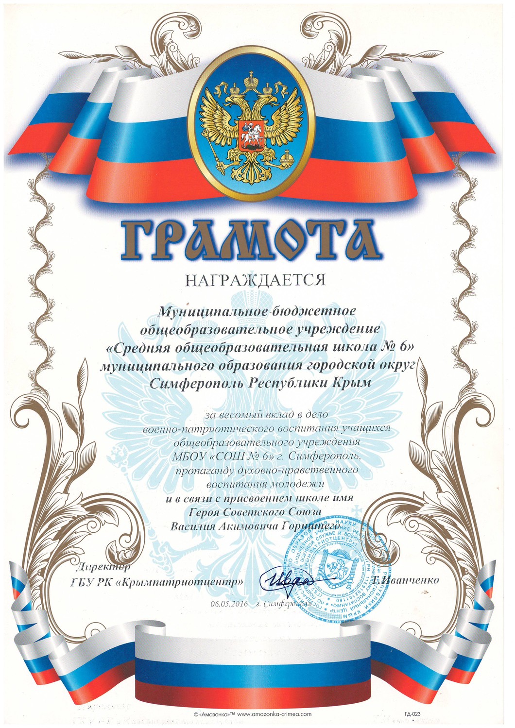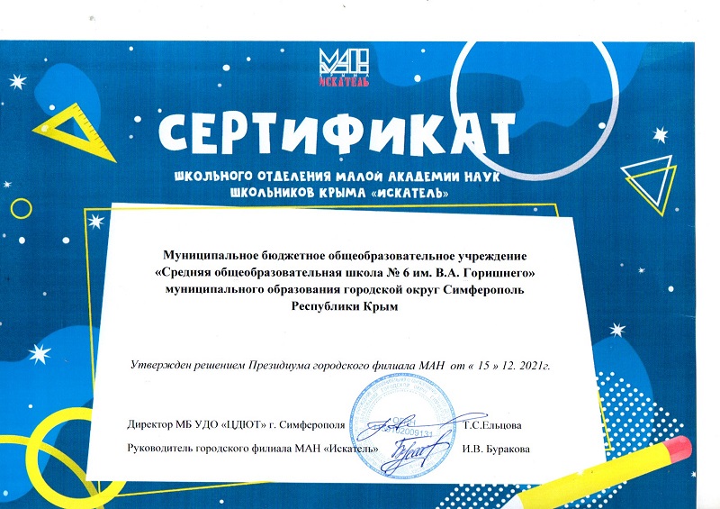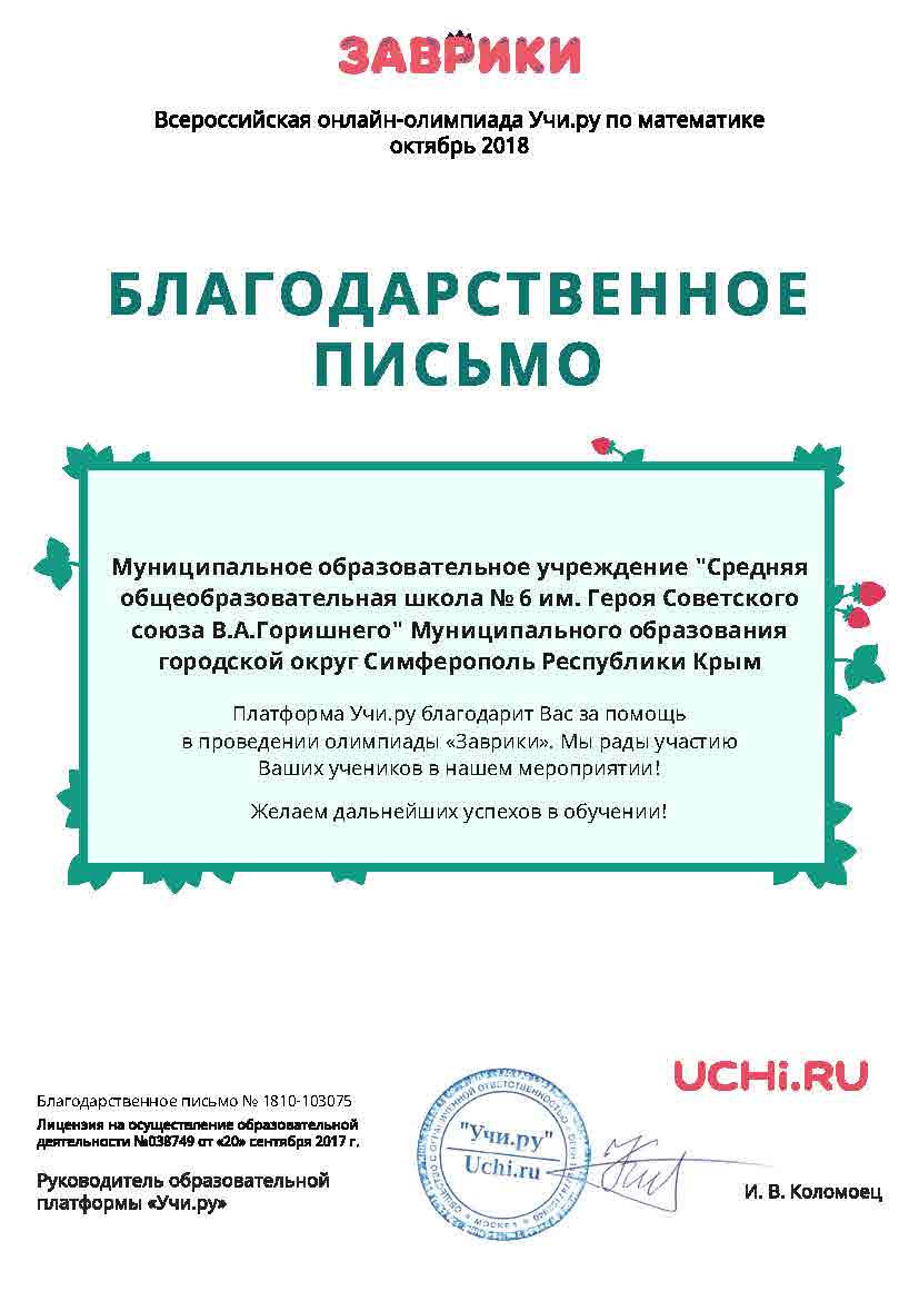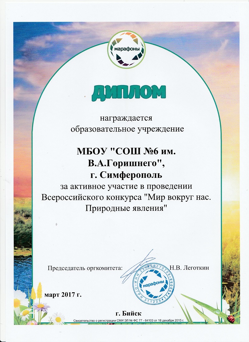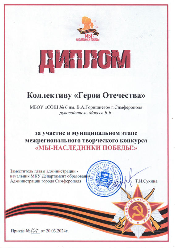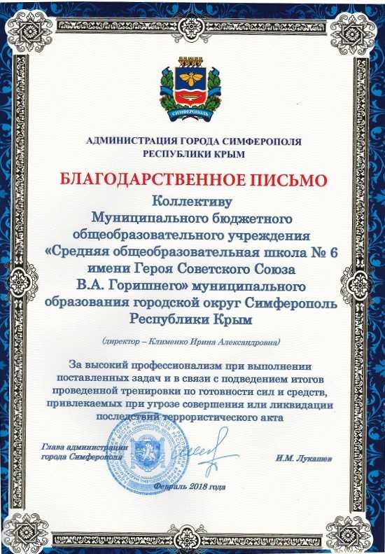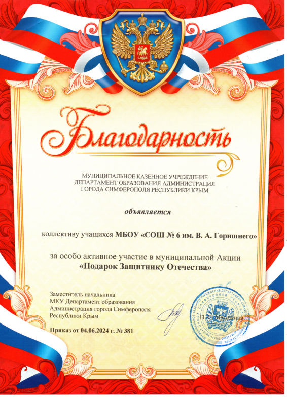 Муниципальное бюджетное общеобразовательное учреждение «Средняя общеобразовательная школа № 6 имени Героя Советского Союза В.А. Горишнего»