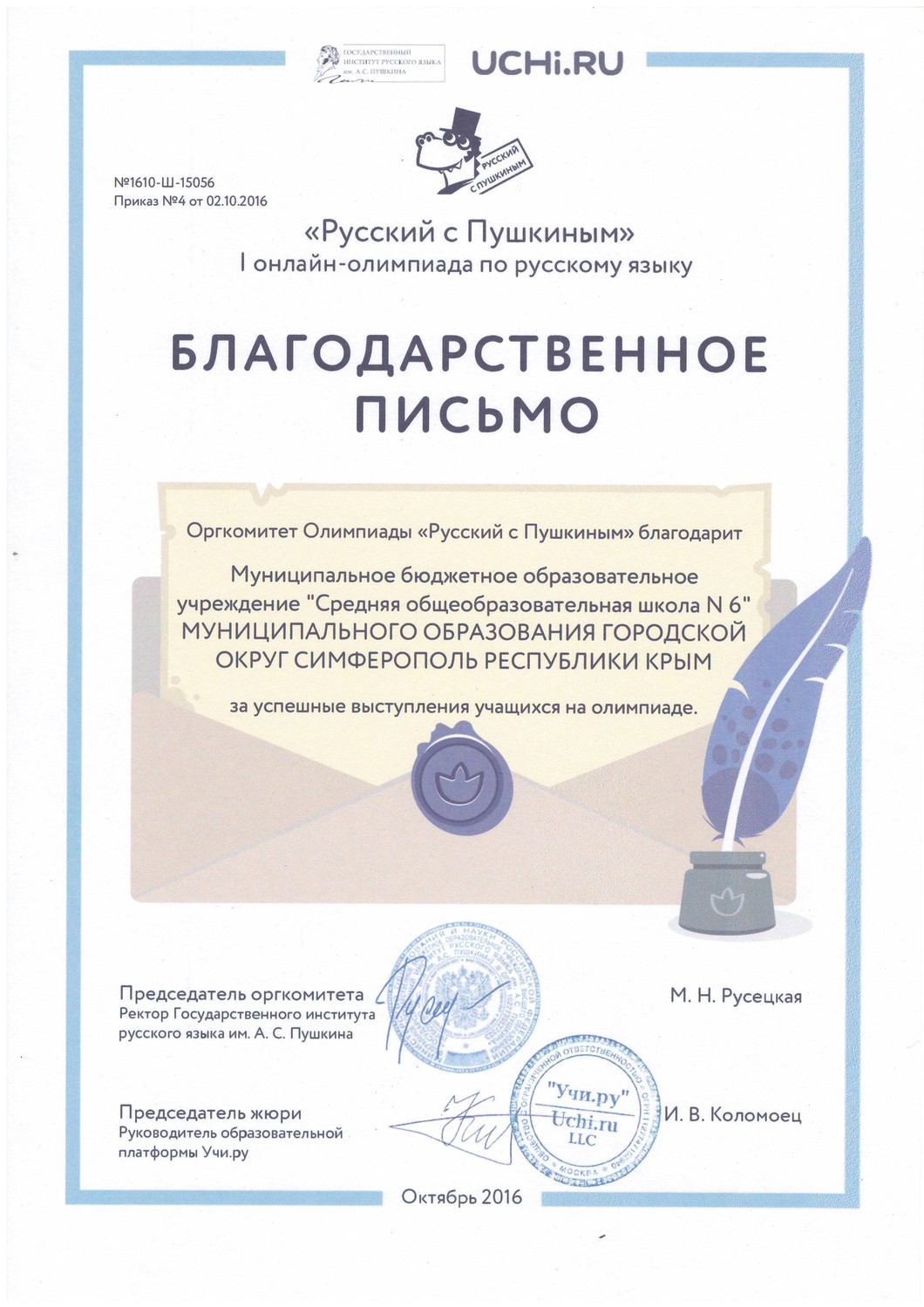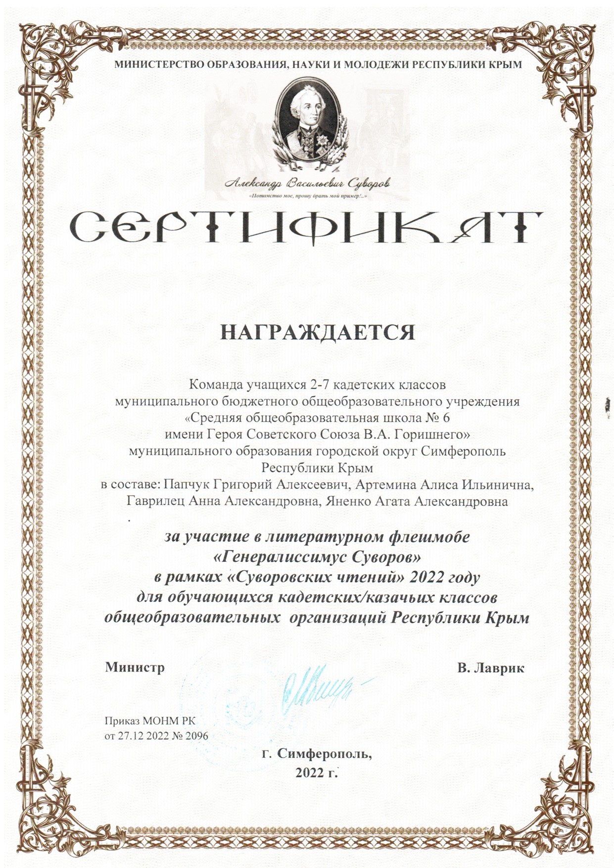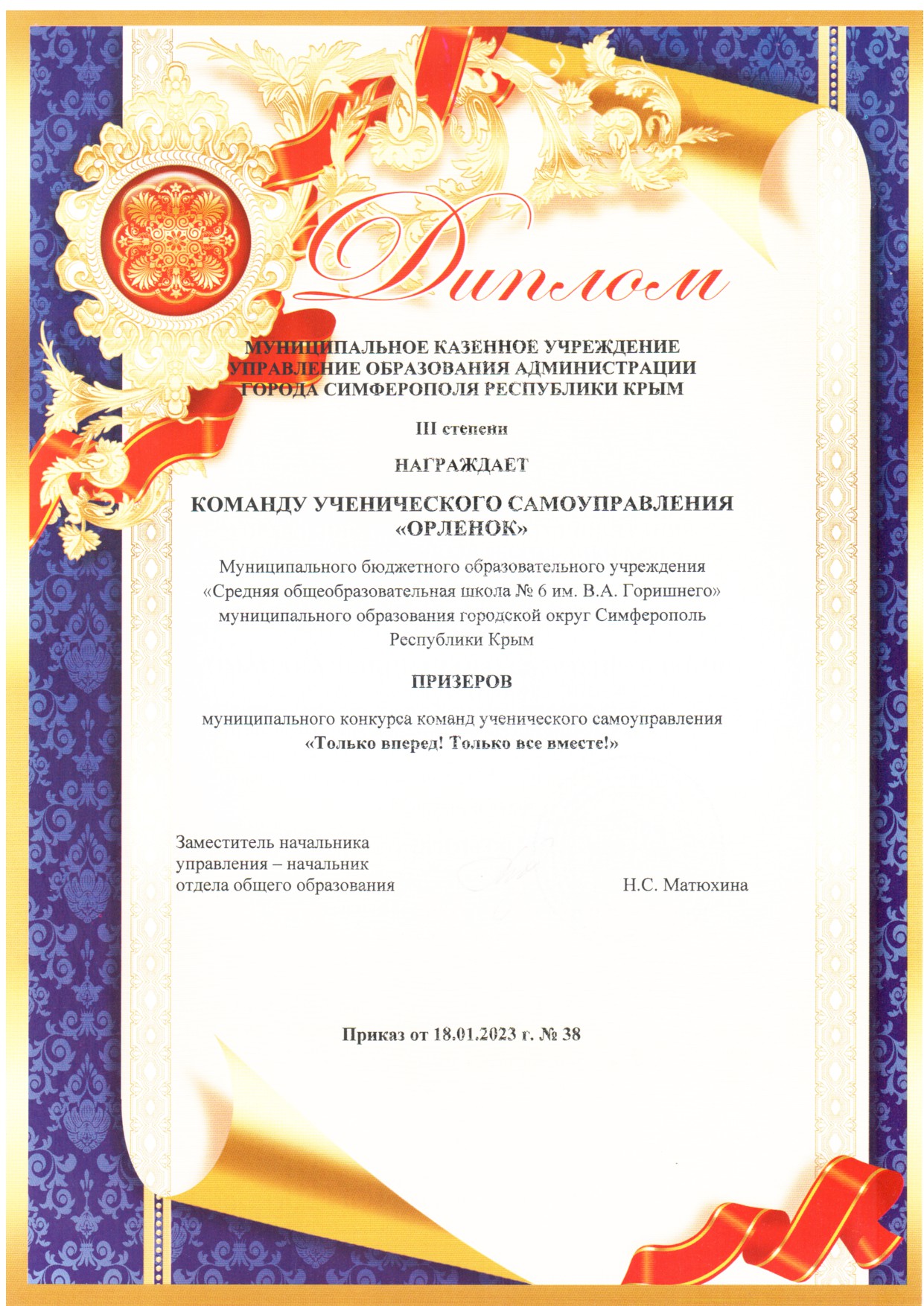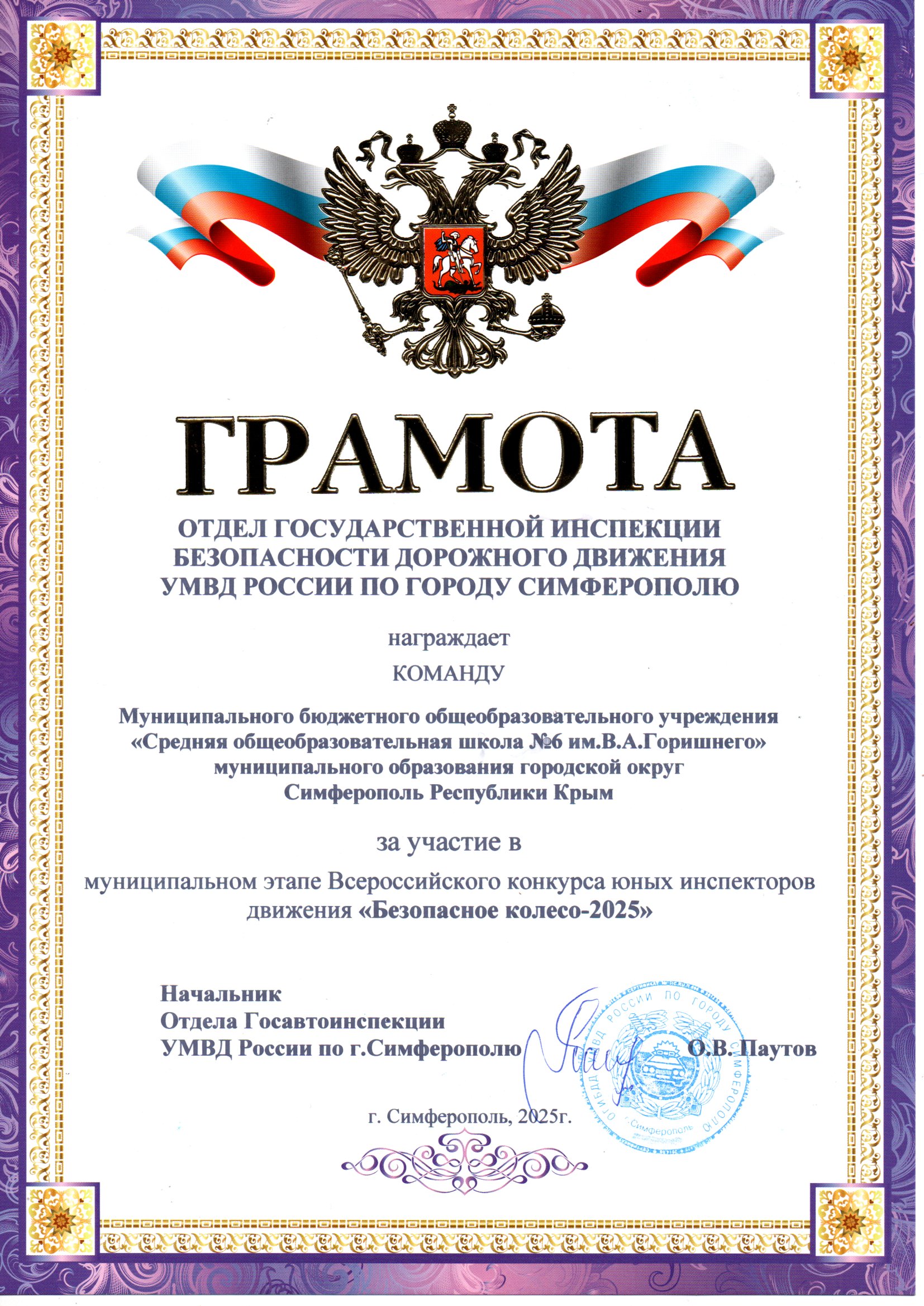 Муниципальное бюджетное общеобразовательное учреждение «Средняя общеобразовательная школа № 6 имени Героя Советского Союза В.А. Горишнего»