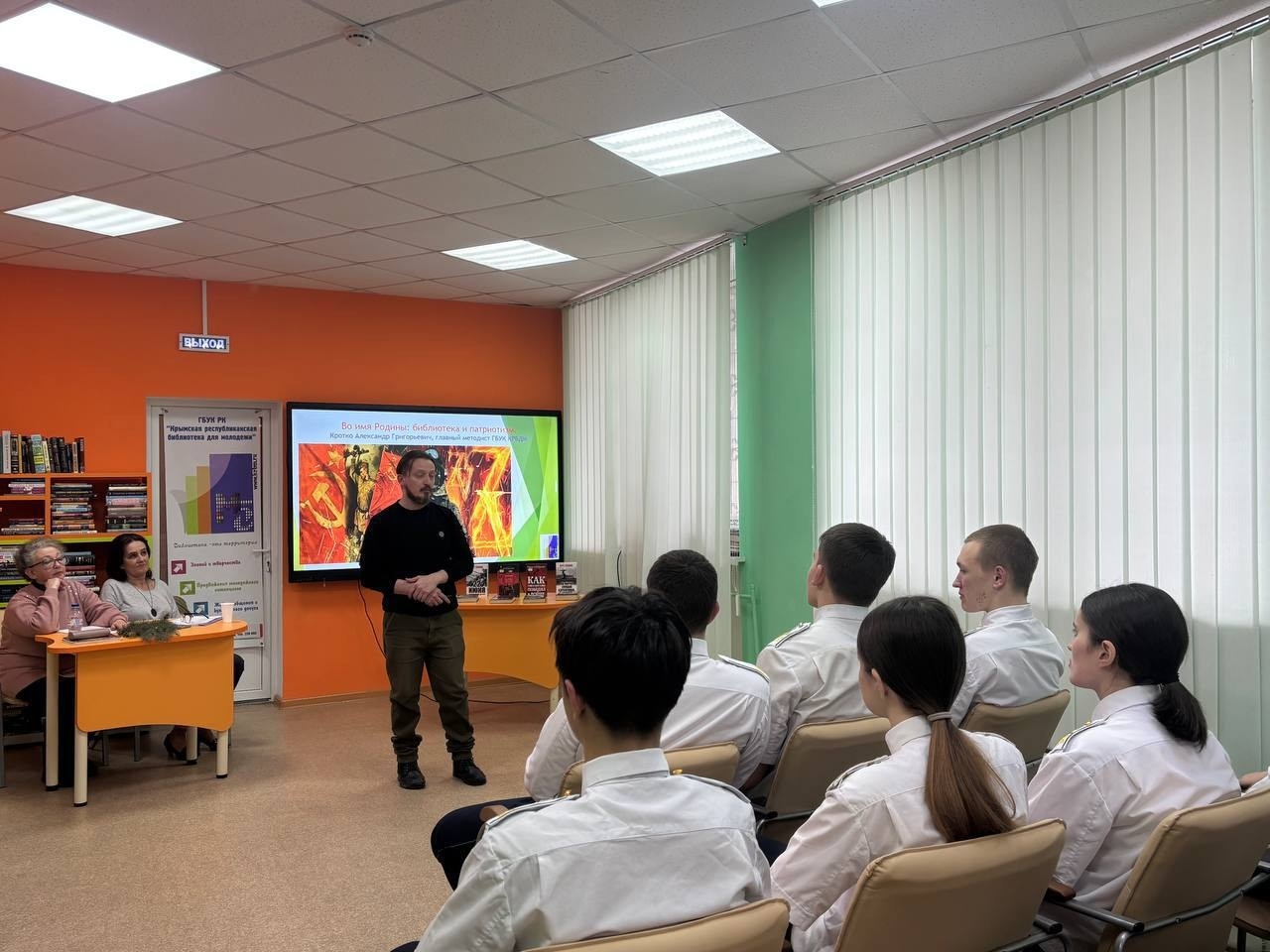 Обучающиеся 7 кадетского класса посетили патриот - час «Крым - земля Героев» к Дню защитника Республики Крым в Крымской республиканской библиотеке для молодежи.