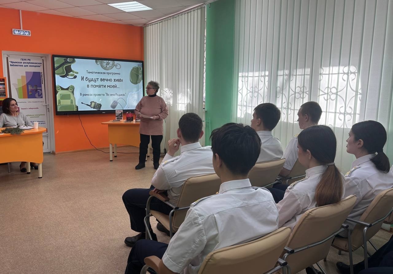 Обучающиеся 10-го кадетского класса нашей школы посетили мероприятие «И будут вечно живы в памяти моей» в Крымской Республиканской библиотеке для молодёжи.