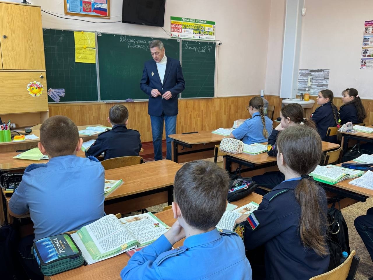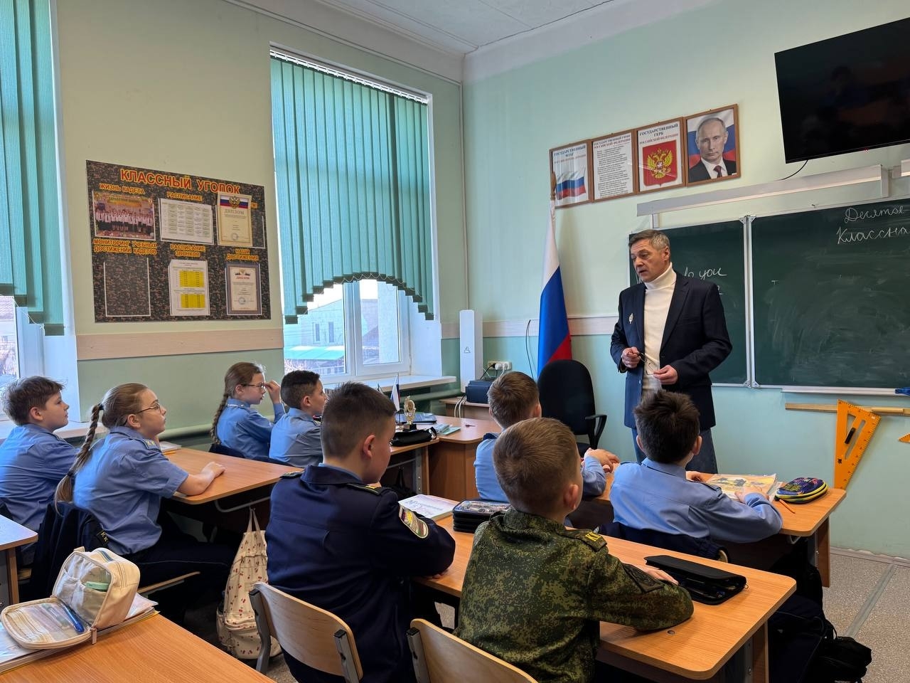 20 февраля МБОУ "СОШ №6 им. В. А. Горишнего" с дружеским визитом, приуроченным ко Дню Защитника Отечества, посетил член Всероссийской общественной организации республиканского отделения "Кадетское братство" Юрий Валентинович Щербинский. Он провел для кадет "Урок мужества ", наградил кадет пятого класса почетными грамотами за успехи в учёбе и активное участие в военно-патриотических мероприятиях. Почётными грамотами были награждены и учителя школы.
