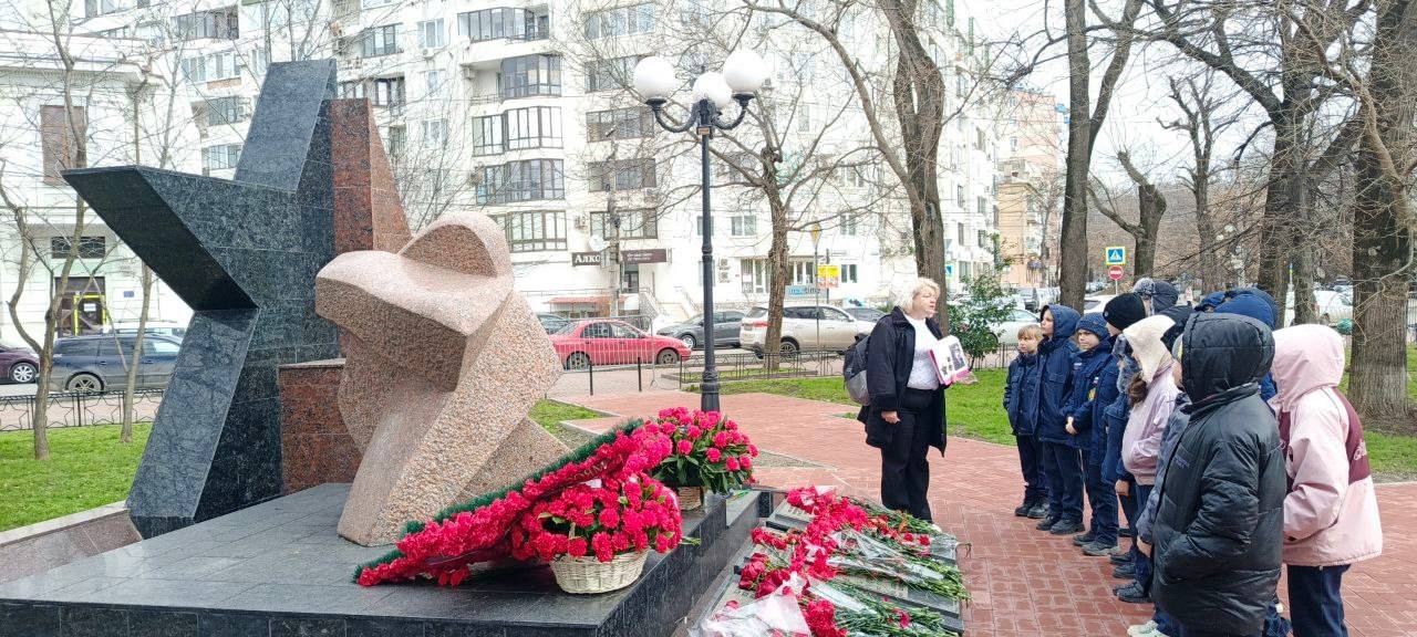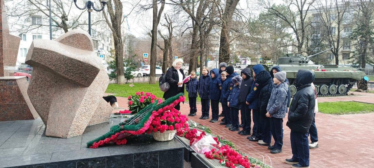 В знак уважения и памяти о военнослужащих, проявивших самоотверженность и верность Родине во время боевых действий за пределами страны, воспитанники кадетского класса возложили цветы к памятнику воинам-интернационалистам.