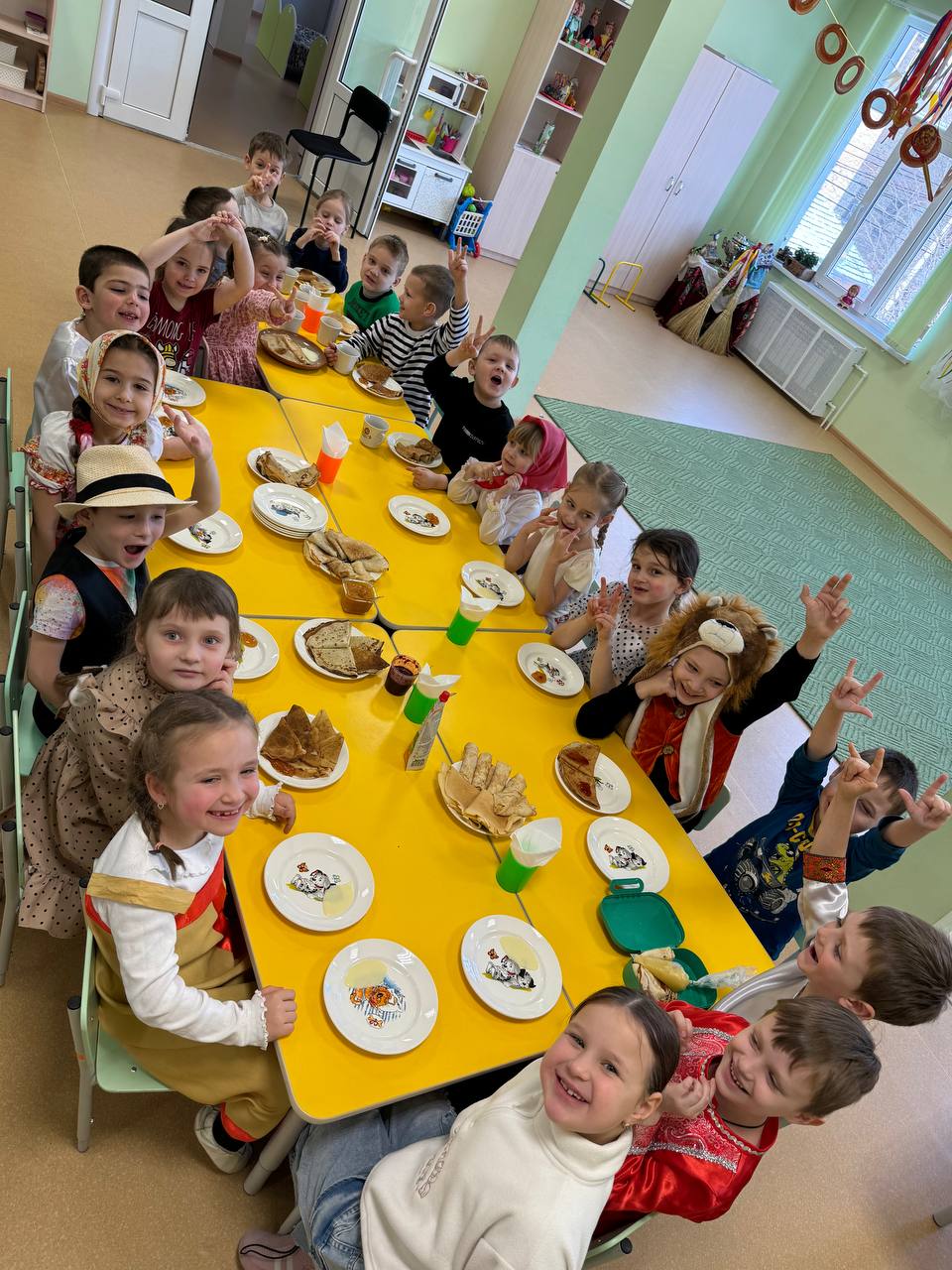 С веселыми кричалками, частушками, хороводами и русскими народными песнями встречали Масленицу воспитанники старшей и подготовительной группы в детском саду. Детей нарядили в яркие русские костюмы. К ребятам заглянула красавица Весна и скоморох, которые под звуки русской музыки устроили для всех ребят соревнования.