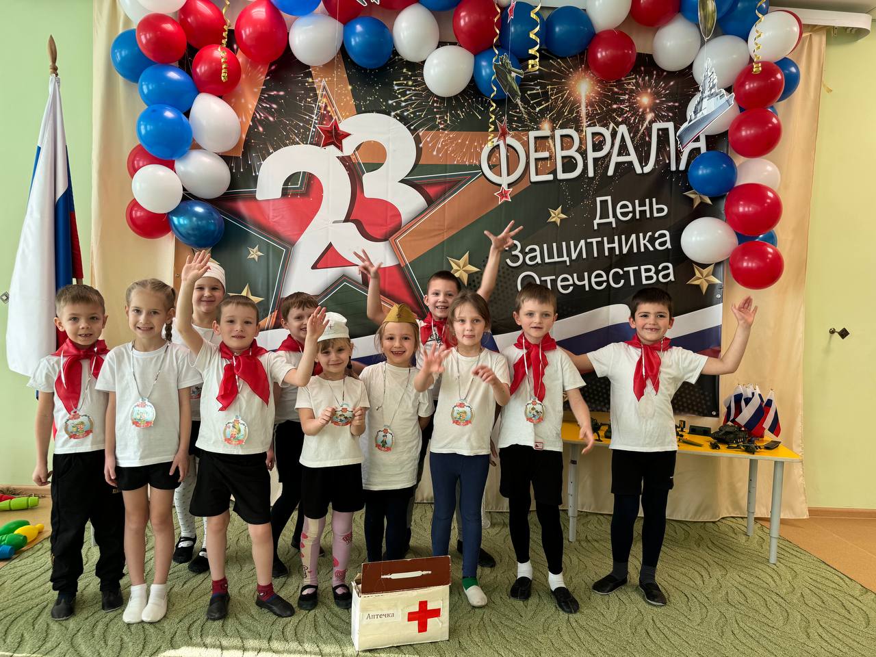 Музыкально-спортивное мероприятие, посвященное Дню защитника Отечества, объединило воспитанников средней группы "Почемучки", старшей группы "Затейники, подготовительной группы "Фантазёры" и их пап в увлекательной программе. Звучали песни о Родине, читались стихотворения, полные гордости за отцов и дедов.