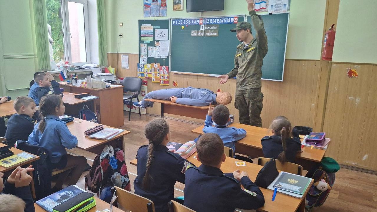Сегодня в вашей школе прошёл урок, посвящённый Дню гражданской обороны, на котором обучающиеся отрабатывали навыки первой медицинской помощи.