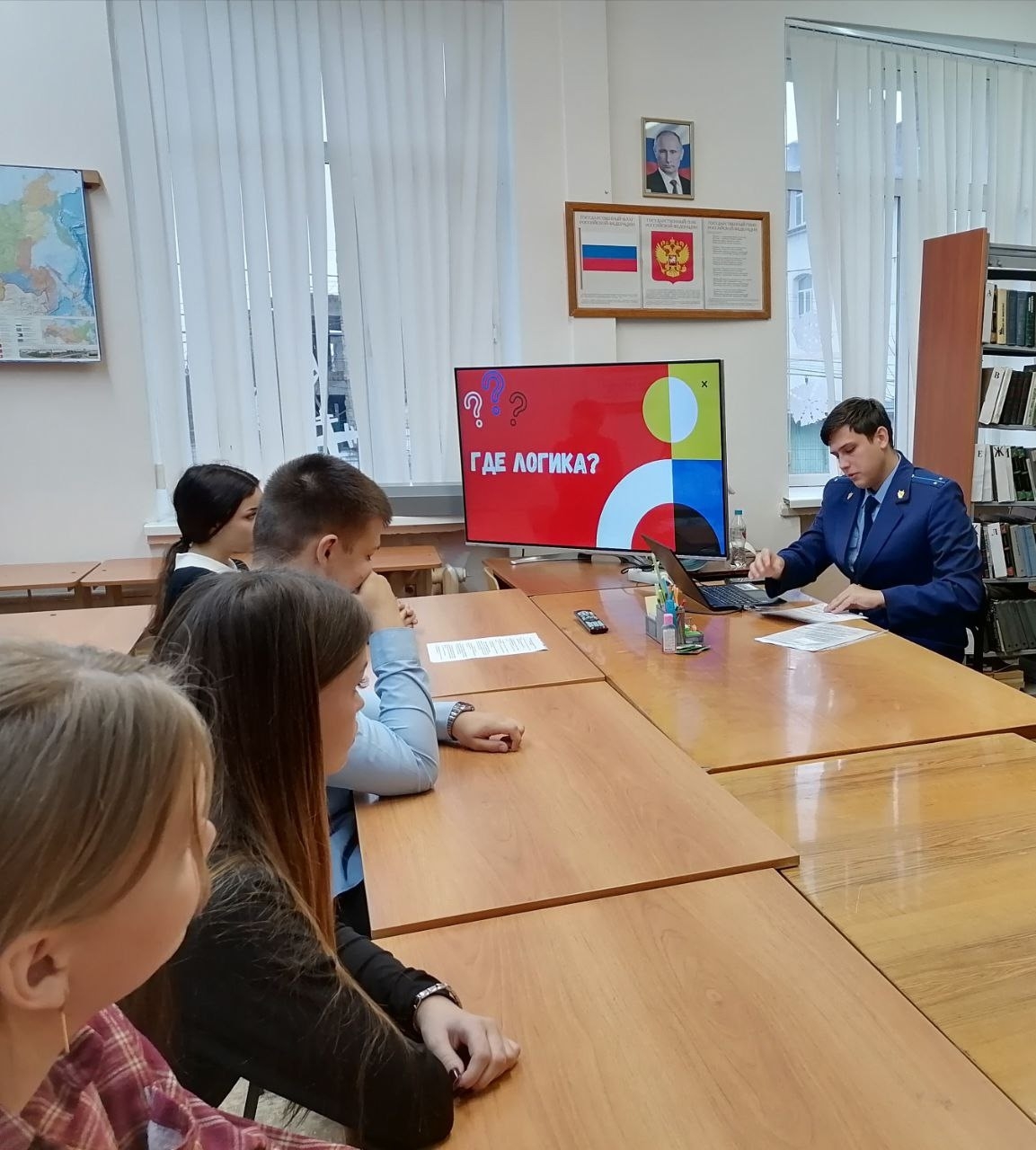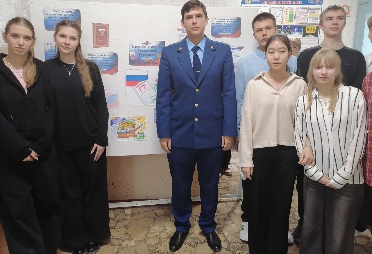 В нашей школе помощником прокурора Киевского района г. Симферополя Сметанюком А. О. было проведено тематическое мероприятие, посвящённое Дню Конституции Российской Федерации.