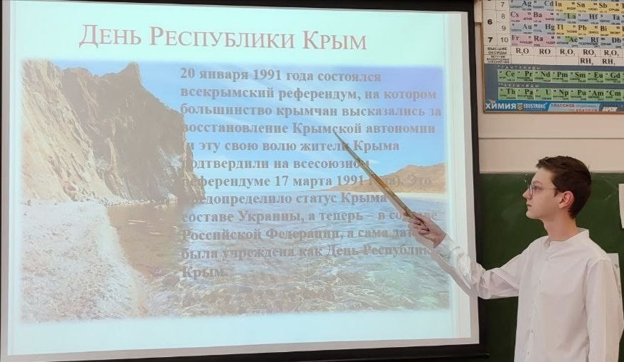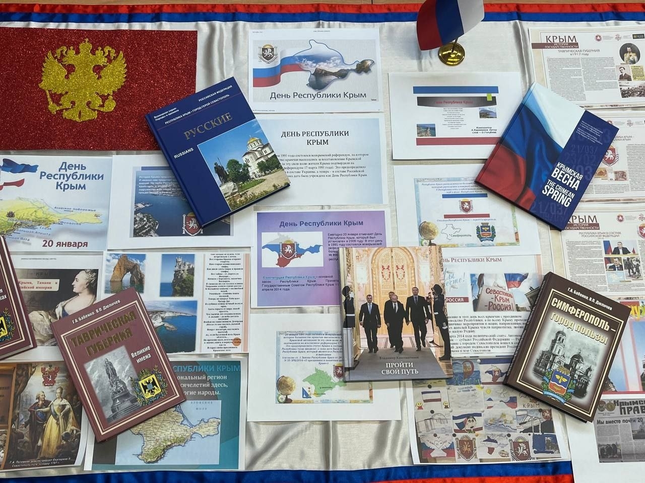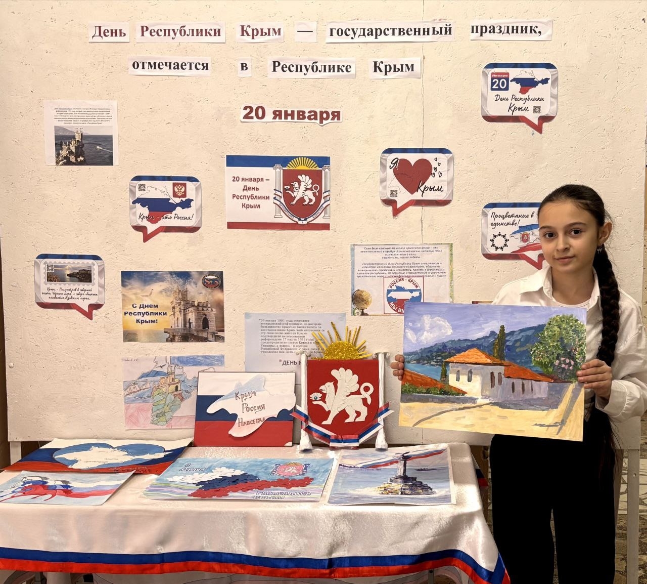 20 января отмечается День Республики Крым! В нашей школе были проведены классные часы, посвящённые этой замечательной дате. Члены школьного ученического самоуправления оформили тематический стенд, учащиеся подготовили рисунки, посвящённые любимой малой родине, в библиотеке прошёл информационный час. Особое внимание привлекла яркая книжная выставка, представившая литературу о полуострове, его истории и культуре.